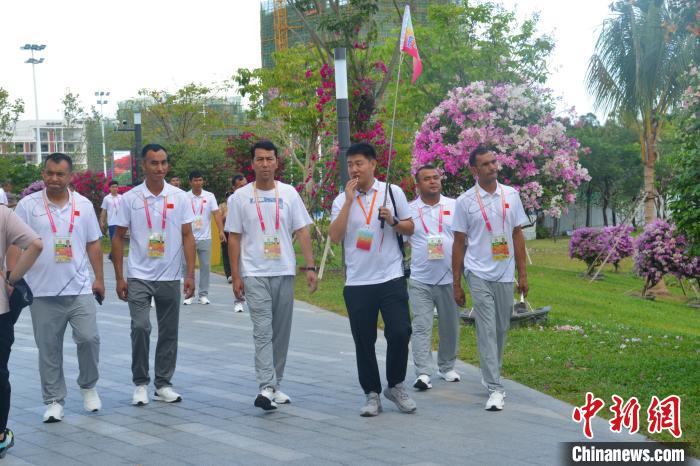 11月25日,海南三亞,第十二屆全國少數(shù)民族傳統(tǒng)體育運動會參賽代表團(tuán)在三角梅科博園參觀考察。張月和 攝