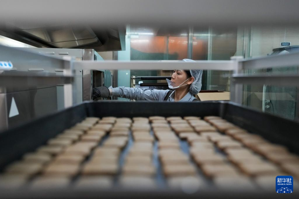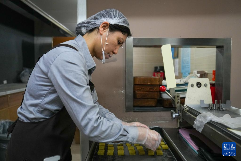 在位于北京前門大街的吳裕泰茶莊,工作人員在制作茶餅干(11月15日攝)。新華社記者 鞠煥宗 攝