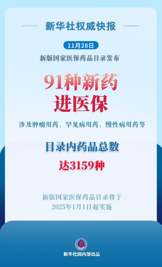 自成立以來,國家醫(yī)保局已連續(xù)7年開展醫(yī)保藥品目錄調(diào)整工作。本次調(diào)整后,目錄內(nèi)藥品總數(shù)將增至3159種,腫瘤、慢性病、罕見病、兒童用藥等領域的保障水平得到提升。新版國家醫(yī)保藥品目錄將于2025年1月1日起實施。