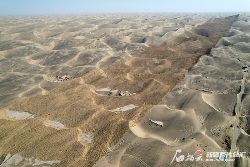 一年多來,“鎖邊”任務涉及的喀什、和田、巴音郭楞蒙古自治州多地因地制宜、分類施策,通過生物治沙、工程固沙、光伏治沙多措并舉,順利實現(xiàn)鎖邊“合龍”。