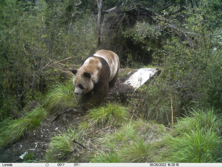 這是大熊貓國(guó)家公園唐家河片區(qū)白熊坪區(qū)域的一臺(tái)紅外相機(jī)拍攝到的野生大熊貓畫(huà)面(2022年5月26日攝)。新華社發(fā)(大熊貓國(guó)家公園唐家河片區(qū)供圖)