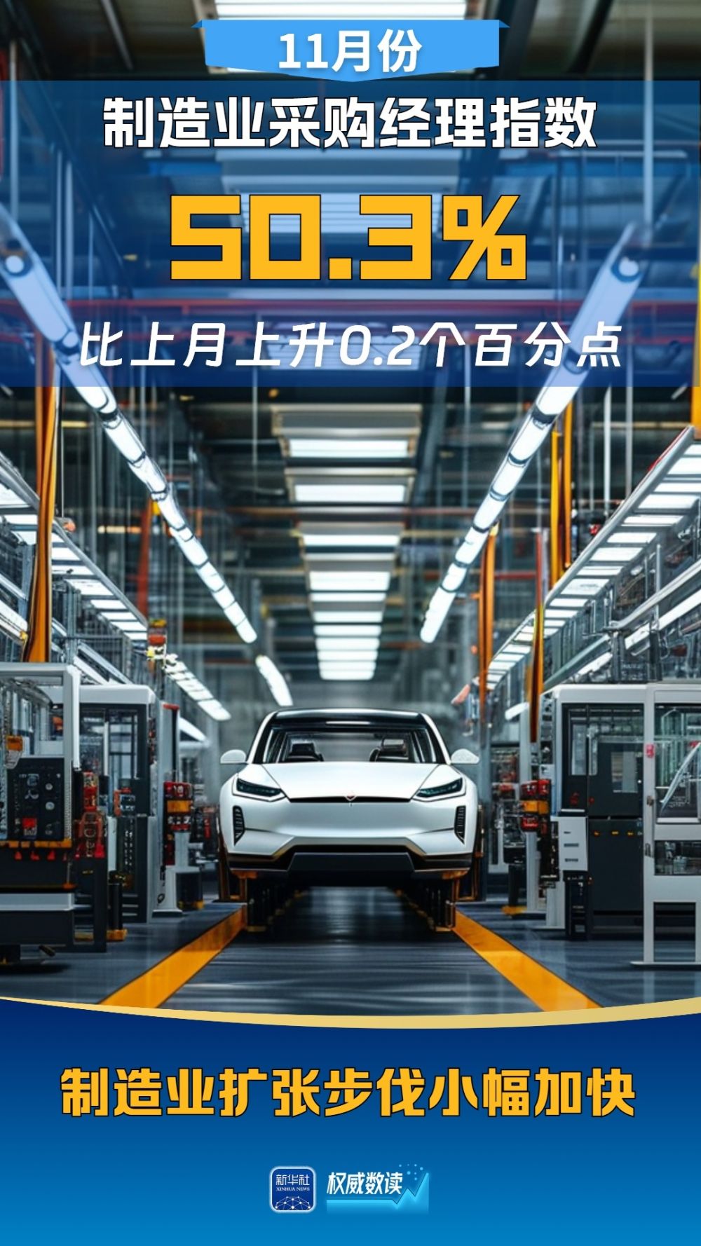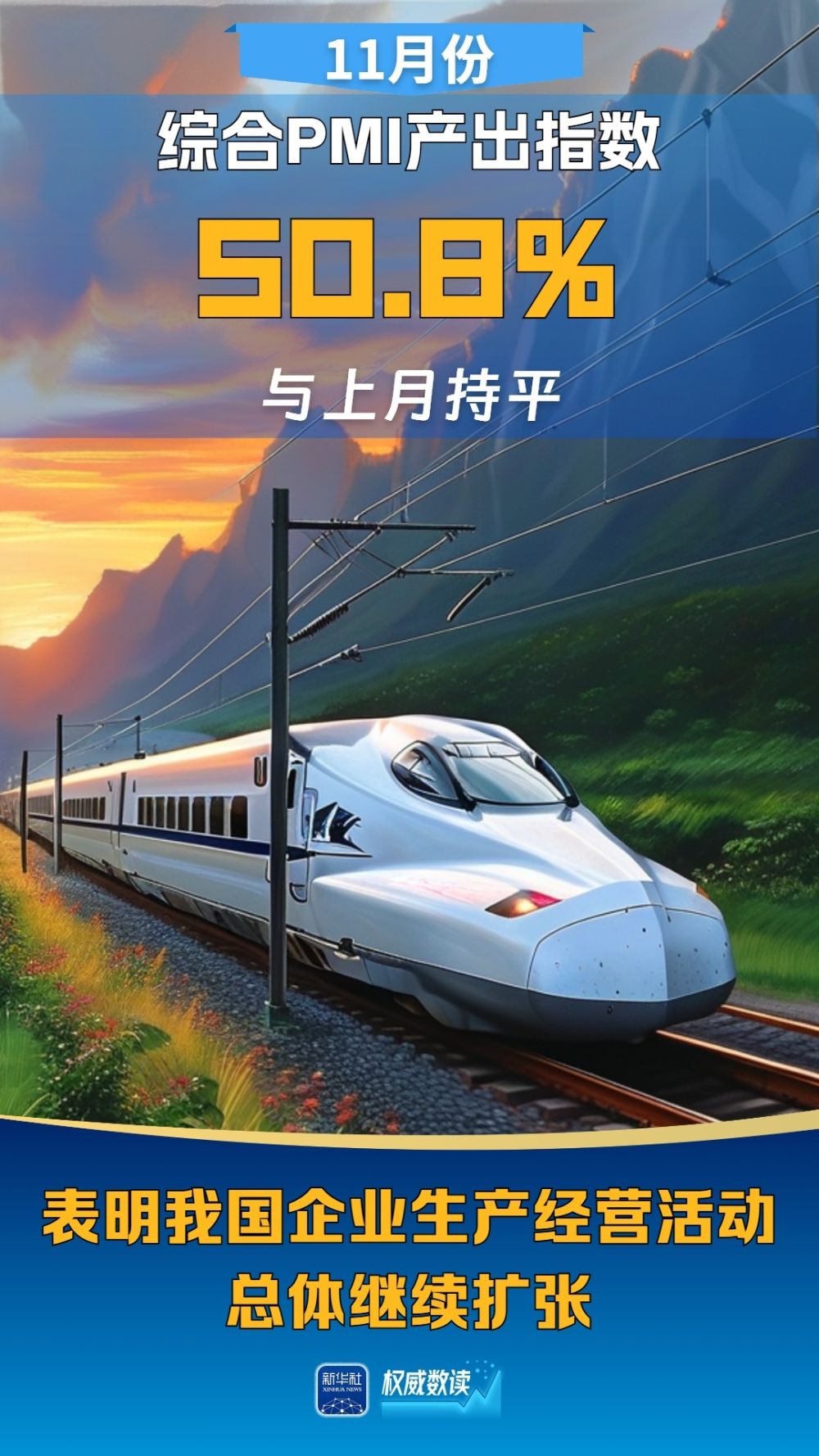 國(guó)家統(tǒng)計(jì)局30日發(fā)布中國(guó)采購(gòu)經(jīng)理指數(shù)。11月份,隨著一系列存量政策和增量政策持續(xù)協(xié)同發(fā)力,制造業(yè)PMI在景氣區(qū)間上行,升至50.3%,擴(kuò)張步伐有所加快;非制造業(yè)商務(wù)活動(dòng)指數(shù)為50.0%,比上月下降0.2個(gè)百分點(diǎn),位于臨界點(diǎn);綜合PMI產(chǎn)出指數(shù)為50.8%,與上月持平,表明我國(guó)企業(yè)生產(chǎn)經(jīng)營(yíng)活動(dòng)總體繼續(xù)擴(kuò)張。
