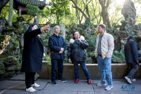 天一閣作為中國現(xiàn)存最古老的私人藏書樓之一,深深吸引了外國記者的注意。天一閣內(nèi)保存了豐富的古籍與文化遺產(chǎn),展現(xiàn)了寧波作為“文化名城”的深厚底蘊(yùn)。講解員向記者們?cè)敿?xì)地介紹了天一閣的歷史背景和文化價(jià)值,講述了“書藏古今、港通天下”的文化內(nèi)涵,使記者們對(duì)寧波的文化歷史有了更深的理解。
