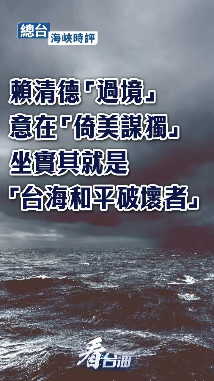 賴清德深知“過境”美國必然遭到大陸方面堅決反對、有力反制,只會加劇臺海緊張局勢。因此,在其行前賴當(dāng)局就勾連外部勢力在國際上造勢,妄圖以所謂“慣例說”將此行正當(dāng)化,掩蓋其挑釁在先、破壞和平的惡劣本質(zhì)。臺灣是中國的臺灣,臺灣地區(qū)領(lǐng)導(dǎo)人以任何名義任何理由“過境”美國,都是對一個中國原則的嚴(yán)重挑戰(zhàn)。錯誤的所謂“慣例”不僅不是正當(dāng)化的理由,還是錯上加錯、惡上加惡,一步步把臺灣推向更加危險的境地。