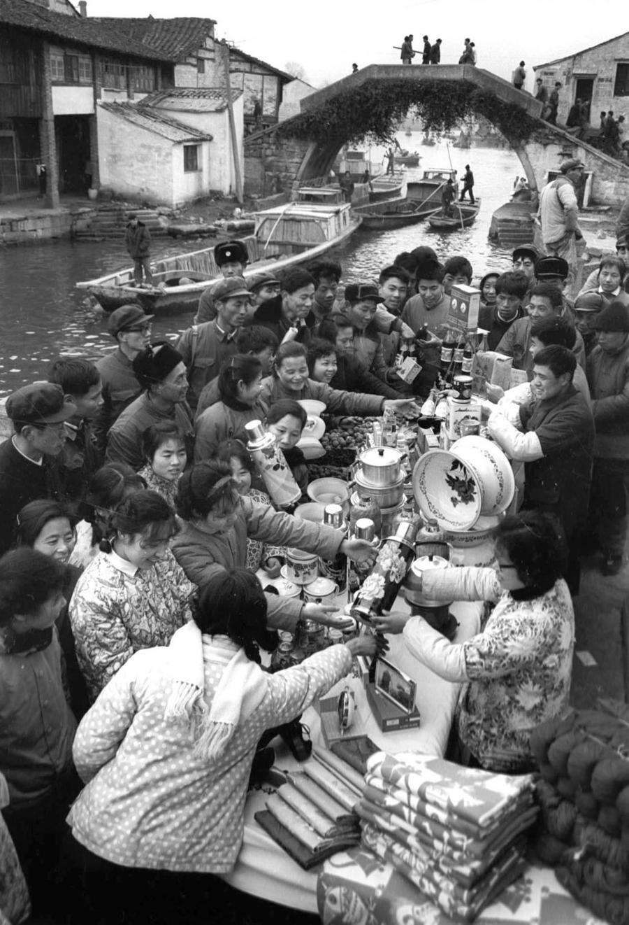 1980年,浙江紹興柯橋農(nóng)民在購(gòu)買年貨。 新華社發(fā)