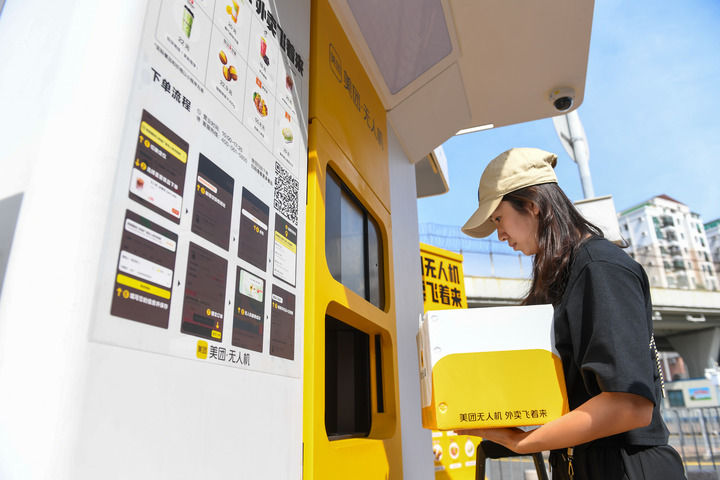 在深圳福田口岸,香港居民使用無(wú)人機(jī)外賣(mài)服務(wù)(2024年10月23日攝)。新華社記者 毛思倩 攝