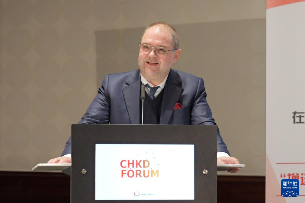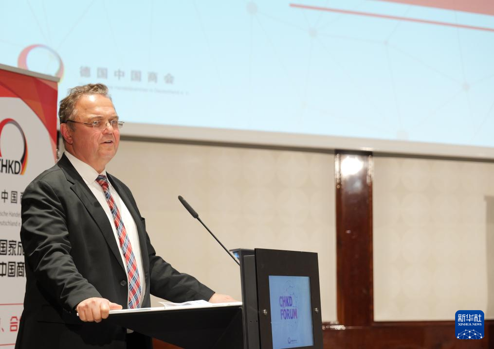 12月5日,德國(guó)聯(lián)邦勞動(dòng)及社會(huì)事務(wù)部國(guó)際勞動(dòng)及社會(huì)政策司司長(zhǎng)卡斯頓·施滕德?tīng)栐诎亓峙e行的德國(guó)中國(guó)商會(huì)2024年度論壇上發(fā)表講話(huà)。新華社記者 邰思聰 攝