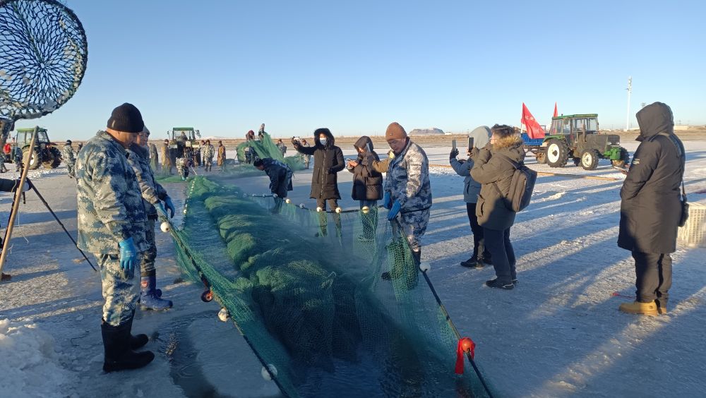 達(dá)里湖漁業(yè)有限責(zé)任公司總經(jīng)理馮俊杰表示:“本次達(dá)里湖冬捕秉承著保護(hù)資源、捕大放小的原則,捕撈產(chǎn)量控制在40萬(wàn)斤,以維持生態(tài)平衡,捕撈期將一直持續(xù)到2025年1月20日?!?/p>