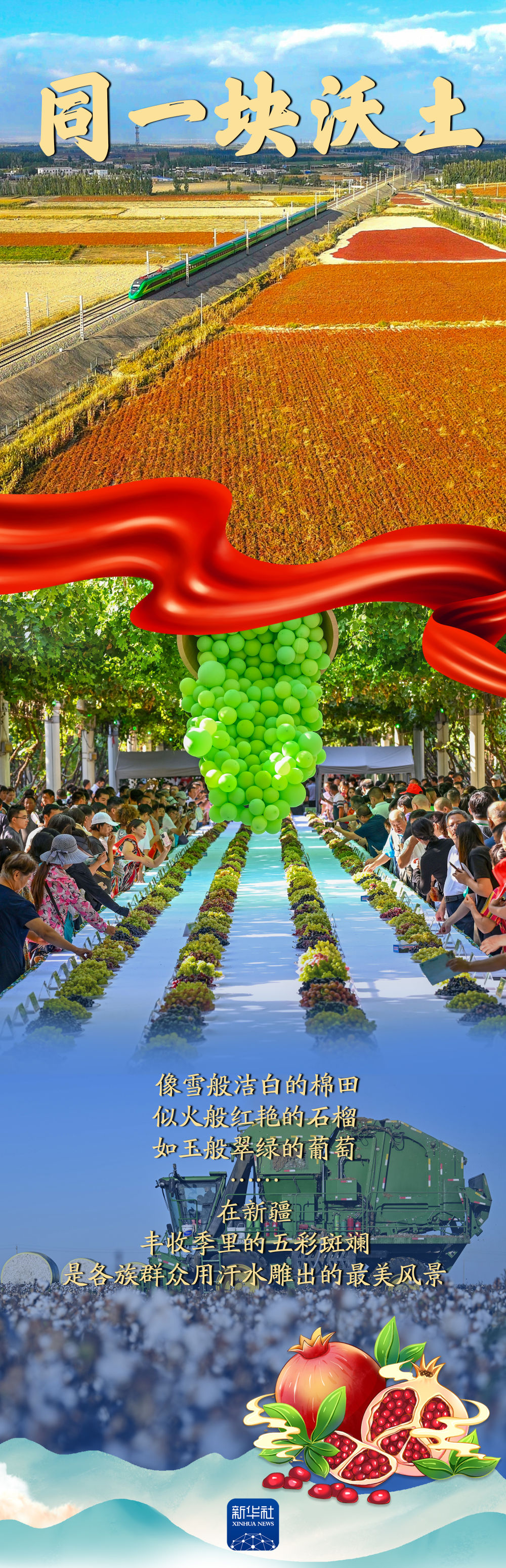 同一片藍天,同一個家園,同一條道路……在新疆,各族群眾“像石榴籽一樣緊緊抱在一起”,同心同德、同甘共苦,共同創(chuàng)造幸福美好的生活。讓我們跟隨這組海報,重溫這一年各族群眾“同”在新疆的故事。