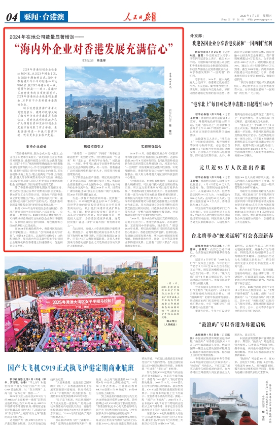 “2024年,在中央政府的堅實支持和特區(qū)政府的開拓努力下,香港經(jīng)濟根基厚、市場韌性強,正在變局中開新格局、穩(wěn)步前行。”展望2025年發(fā)展,特區(qū)政府財政司司長陳茂波充滿信心地表示,香港會繼續(xù)改革創(chuàng)新、搶抓機遇,加速融入國家發(fā)展大局,更主動對接國家發(fā)展戰(zhàn)略,助推香港的經(jīng)濟、社會、民生等各項事業(yè)取得更好發(fā)展,讓香港“國際大都會”的品牌煥發(fā)新光彩。