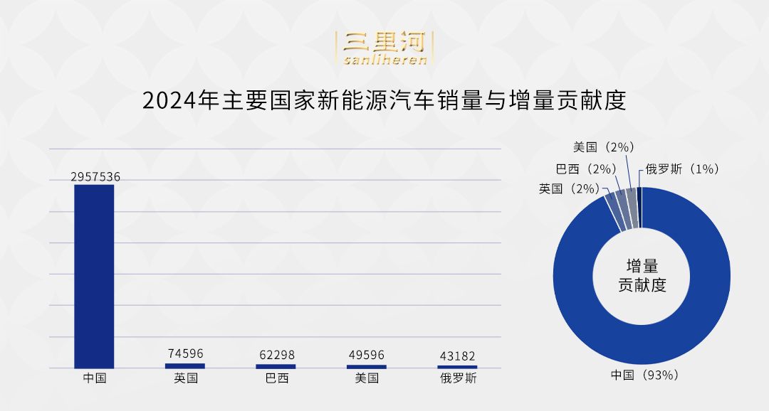“2024年中國新能源乘用車銷量對世界的增量貢獻(xiàn)度是93%,英國、巴西、美國都是2%,俄羅斯1%,所以整個世界新能源車總體的增量貢獻(xiàn)基本就是在中國。”