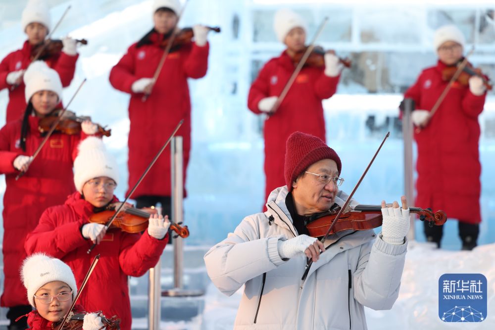 當(dāng)日,哈爾濱冰雪大世界園區(qū)上演音樂“快閃”,為即將到來的亞冬會助力。