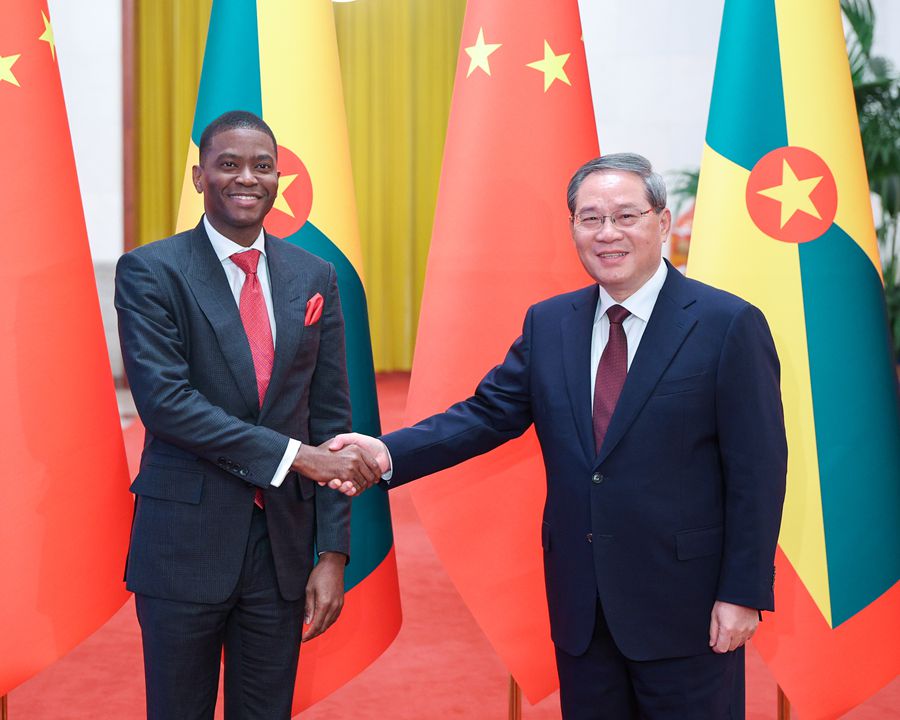 李強(qiáng)指出,中方愿同格方加強(qiáng)發(fā)展戰(zhàn)略對(duì)接,以高質(zhì)量共建“一帶一路”為引領(lǐng),深化農(nóng)業(yè)、基礎(chǔ)設(shè)施建設(shè)、醫(yī)療衛(wèi)生等傳統(tǒng)領(lǐng)域合作,積極探討在新能源、數(shù)字經(jīng)濟(jì)、藍(lán)色經(jīng)濟(jì)等新興領(lǐng)域打造更多合作亮點(diǎn),推動(dòng)兩國(guó)互利合作提質(zhì)升級(jí)。中方鼓勵(lì)有條件的中國(guó)企業(yè)赴格投資興業(yè)。雙方要繼續(xù)加強(qiáng)旅游、文化、教育、媒體等領(lǐng)域交流合作。中方愿幫助格林納達(dá)等加勒比國(guó)家提升應(yīng)對(duì)氣候變化能力,推動(dòng)《聯(lián)合國(guó)氣候變化框架公約》及其《巴黎協(xié)定》全面有效實(shí)施。中方愿同格方攜手推動(dòng)中拉命運(yùn)共同體建設(shè)不斷走深走實(shí),共同捍衛(wèi)全球南方利益,推動(dòng)構(gòu)建人類(lèi)命運(yùn)共同體。