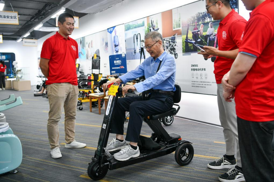 2024年10月12日,一名老人在體驗(yàn)折疊電動代步車。位于深圳的老年用品商場“深業(yè)·健康匯”向市民開放,展示居家安全、娛樂生活、智能照護(hù)等50余個品類、數(shù)百種智能居家適老產(chǎn)品,吸引眾多市民前來了解、選購。新華社記者梁旭 攝