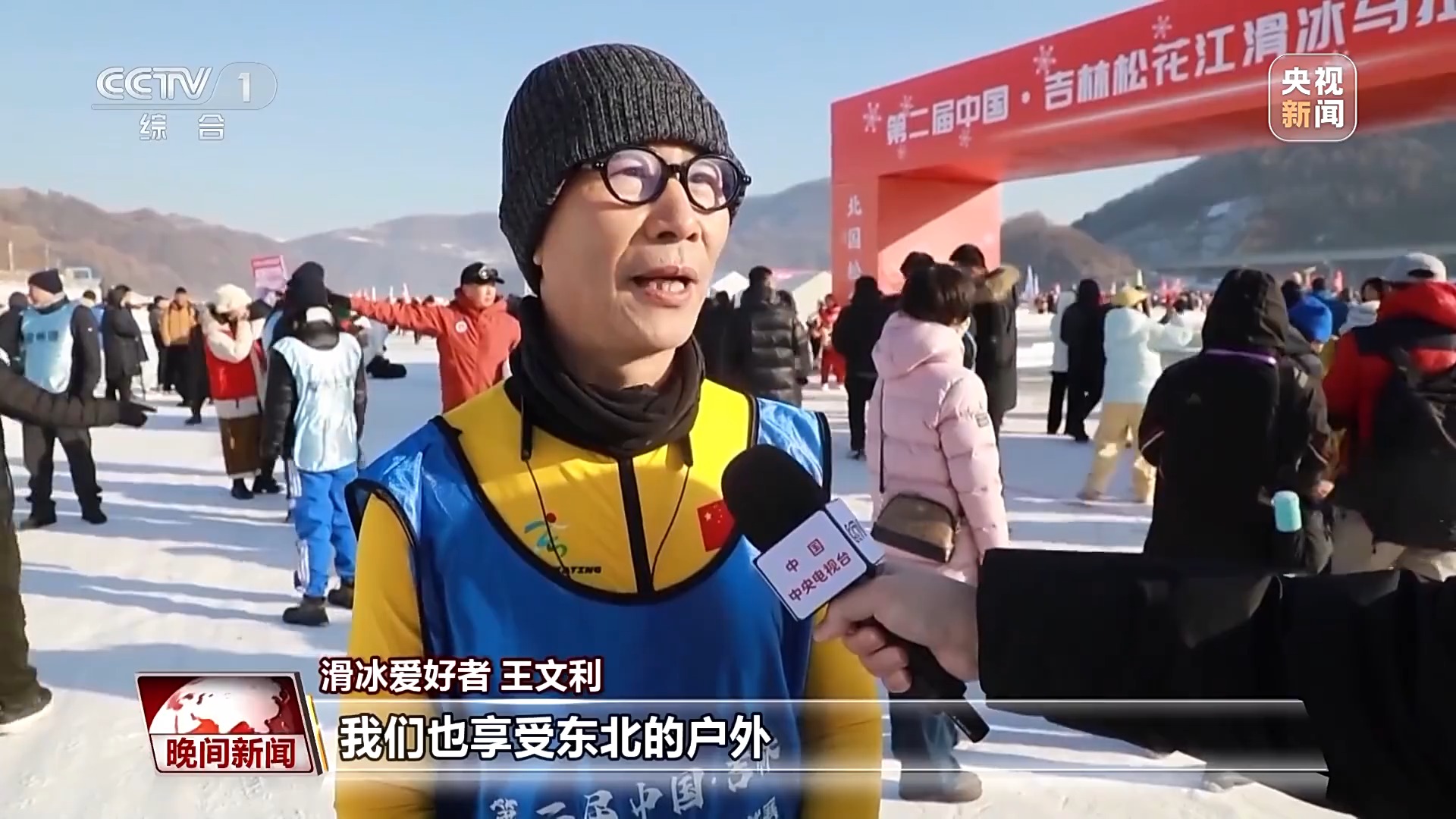 滑冰愛(ài)好者 王文利:我們也享受東北的戶外,因?yàn)椴坏綉敉饣?,就跟沒(méi)感受到過(guò)冬一樣。