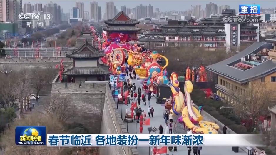 在北京長安街,大紅燈籠、中國結(jié)等各種燈飾陸續(xù)點(diǎn)亮,十里長街“披紅掛彩”迎新春。廣州越秀山華燈璀璨,具有嶺南特色的大型燈組、水上花燈打造出流光溢彩的喜慶氛圍。在陜西西安,今年燈會將38件文物珍寶以燈組的形式進(jìn)行復(fù)刻,讓文物“活”起來、“亮”起來,通過這種方式讓市民游客感受中國傳統(tǒng)節(jié)日的魅力。在福建廈門,數(shù)萬盞宮燈、藤球燈、燈籠串布滿大街小巷,將城市裝扮一新,微風(fēng)拂過,花燈搖曳,喜氣滿滿。