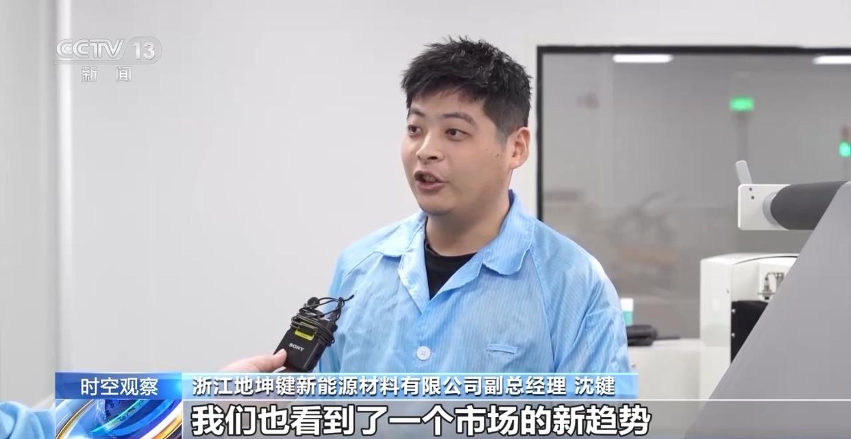 浙江地坤鍵新能源材料有限公司副總經(jīng)理沈鍵:我們也看到了市場的新趨勢,比如說折疊屏手機(jī)、智能穿戴設(shè)備的普及,也對電池的續(xù)航提出了更高的要求。我們也在固態(tài)電池方面做技術(shù)攻關(guān),力爭在下一代產(chǎn)品中得到技術(shù)突破。