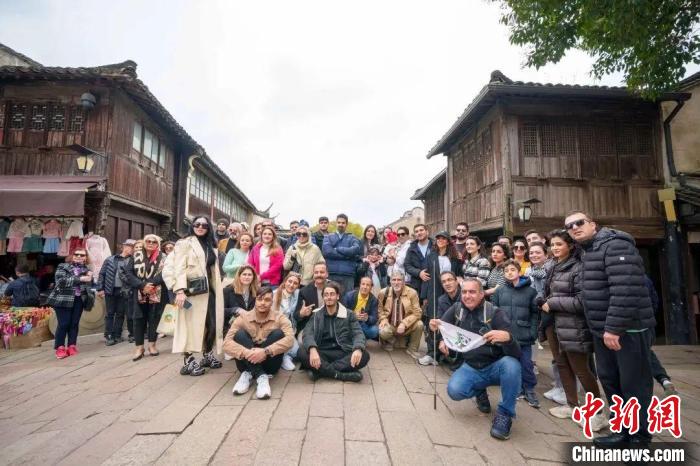 外國游客“打卡”烏鎮(zhèn)景區(qū)。桐鄉(xiāng)市委宣傳部供圖