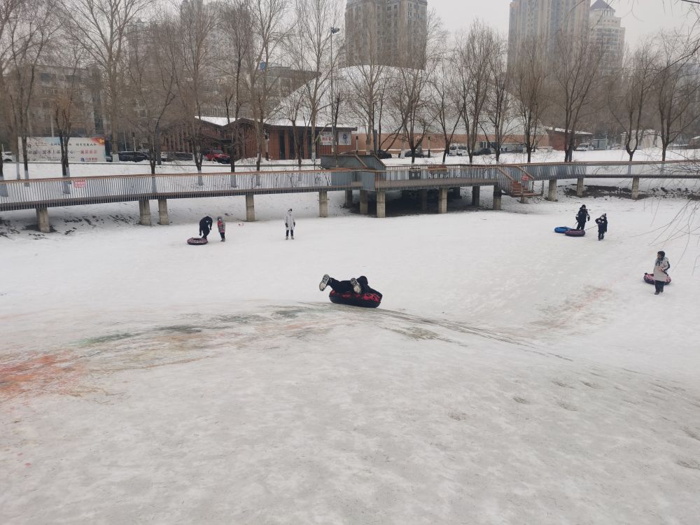 在哈爾濱湘江公園,28日一早,10歲的黃梓天就和爸爸一起來玩雪圈。這處公園里形成的自然雪坡,每年冬季都成為市民滑雪圈的好去處。“早上孩子要來,就帶著過來玩一會,也是一種過年的方式?!秉S梓天的父親黃文說。