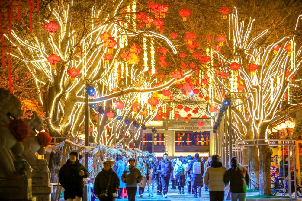 1月25日,游人在楊柳青古鎮(zhèn)的如意大街游覽。(受訪者供圖)