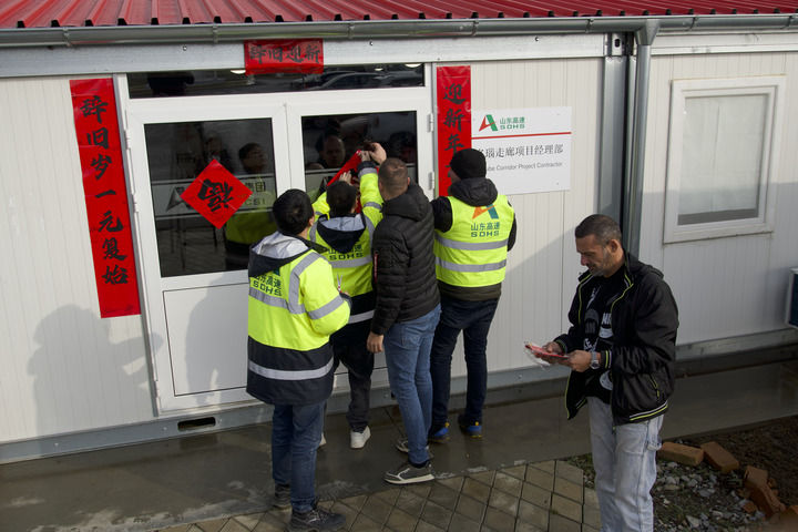 “春聯(lián)一貼,年味兒就濃了!”除夕當(dāng)天,塞爾維亞“多瑙走廊”快速路項(xiàng)目綜合部負(fù)責(zé)人吳一帶著塞籍員工一起貼春聯(lián)裝扮項(xiàng)目營地,現(xiàn)場一片歡聲笑語。