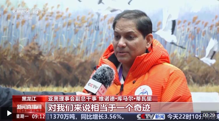 在接受總臺(tái)記者采訪時(shí),他表示很榮幸能成為本屆亞冬會(huì)的一名火炬手,并對(duì)賽會(huì)籌備工作給予高度評(píng)價(jià)。