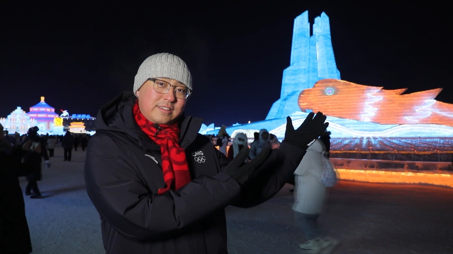 不僅亞冬會氛圍濃厚,園區(qū)當中也是年味十足,春節(jié)期間,哈爾濱冰雪大世界又上新了一些春節(jié)景觀。