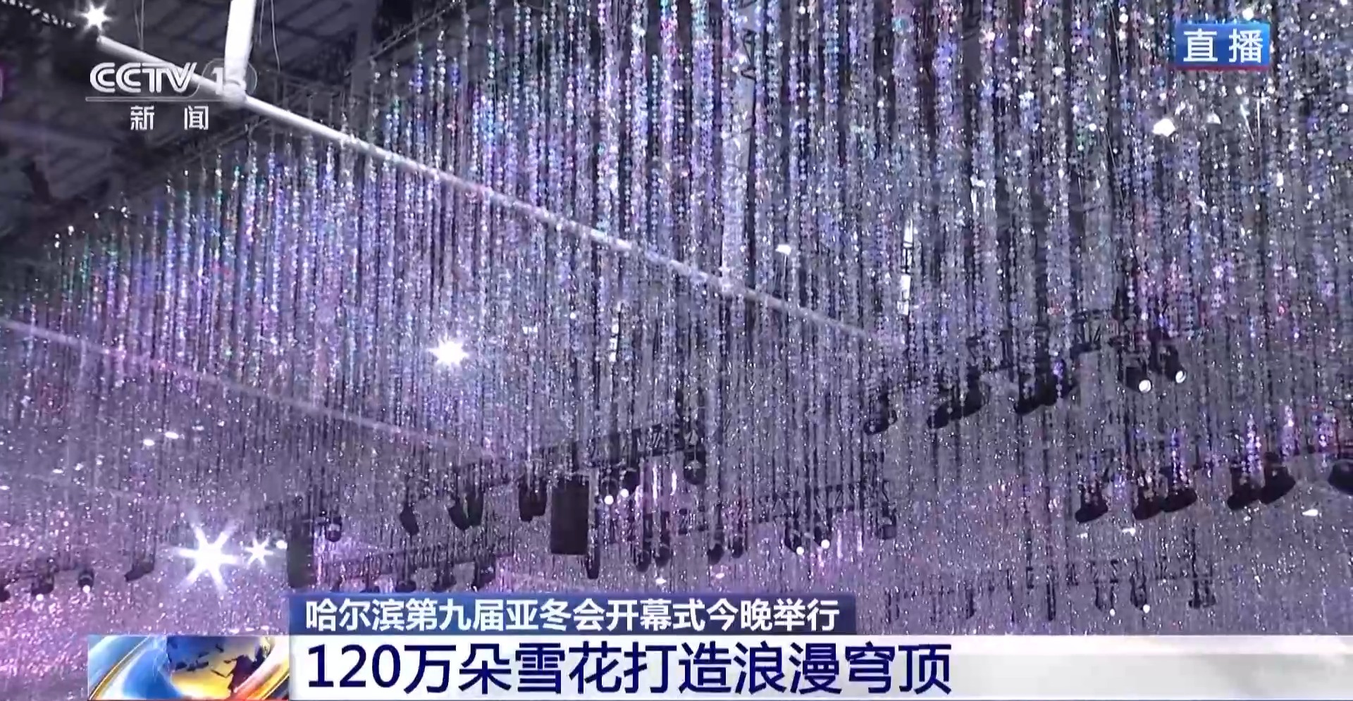 此外,場館穹頂懸掛了120萬朵發(fā)光的小雪花片,這些雪花片材質(zhì)輕盈,既不影響承重,又增添了沉浸感。觀眾一進入場館,便能感受到濃郁的冰雪氛圍,仿佛置身于哈爾濱這座冰雪之城的會客廳。