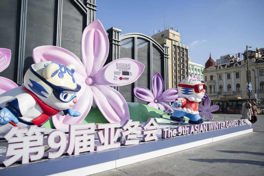 哈爾濱街頭的亞冬會(huì)吉祥物造型可愛(ài)。新華社記者 謝劍飛 攝