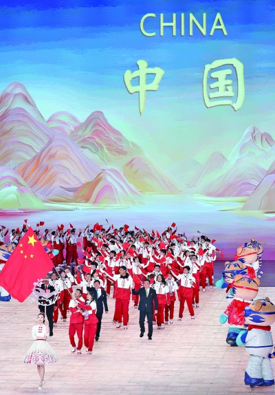 當(dāng)中國(guó)代表團(tuán)入場(chǎng)時(shí),體育健兒揮手致意,現(xiàn)場(chǎng)觀(guān)眾起立鼓掌。在本屆亞冬會(huì)上,中國(guó)代表團(tuán)將參加全部項(xiàng)目的比賽,并朝著“取得我國(guó)亞冬會(huì)參賽史上最好成績(jī)”的目標(biāo)全力進(jìn)發(fā)。
