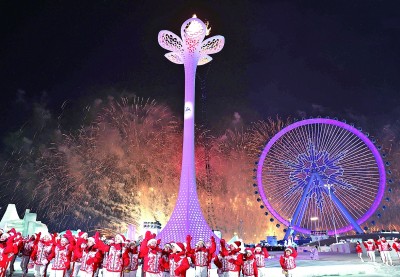 在《冰雪的亞細(xì)亞》的歡快樂(lè)曲聲中,來(lái)自34個(gè)國(guó)家和地區(qū)的體育代表團(tuán)相繼入場(chǎng),受到全場(chǎng)觀(guān)眾的熱情歡迎。哈爾濱,這座“冰雪之城”,用熱情撰寫(xiě)了一部熱氣騰騰的迎賓志。