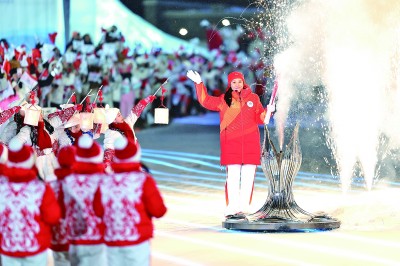 2月7日,第四棒火炬手張虹點(diǎn)燃主火炬。