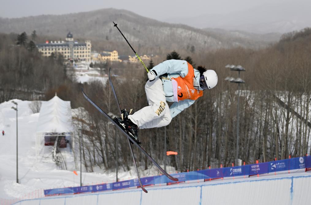 2月8日,李方慧在比賽中。當(dāng)日,在第九屆亞冬會自由式滑雪女子U型場地技巧決賽中,中國選手李方慧獲得金牌,這是中國體育代表團在本屆亞冬會上的首枚金牌。新華社記者 夏一方 攝