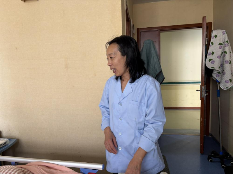 來自黑龍江省的李世娟,今年55歲,因為年紀(jì)原因本想從事育兒嫂工作的她只能從事護(hù)理工作?!凹艺菊f雇主更想要年輕些的阿姨帶孩子。”輾轉(zhuǎn)之下,她考取了護(hù)工資格證,成為一名老年護(hù)理員?!斑@是我照顧的第二位老人”她輕聲說。第一位老人出院時,家屬本想帶她走,她婉拒了,“看著他們好起來我也高興,但這里總有更需要我的人?!闭勗掗g,90床奶奶的兒子來探望老母親,輕摸著奶奶的頭一遍又一遍地問著“睜眼看看,我是誰呀”,奶奶也是含糊不清地說著“不知道”,兒子半開玩笑地說“傻老太太”。李世娟在一旁緊忙說:“你不要說她傻啊,糊涂啊,因為患有阿爾茲海默癥的人有時是清醒的,一聽你說她傻她就覺得自己好像是傻了”,李世娟向記者說,自己平日很喜歡看健康教育節(jié)目,見到認(rèn)識的人也會多科普幾句,“我姑娘說,媽你別老給人家上課,我說媽那不是上課,只是想把自己知道的分享給人家”,李世娟一邊說,一邊難掩苦笑。