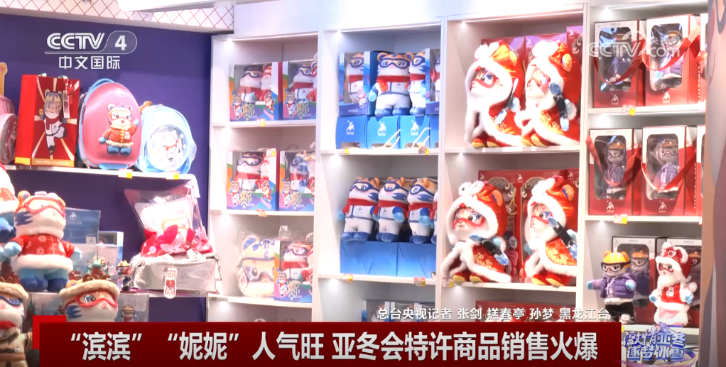 本屆亞冬會(huì)上,受到人們關(guān)心和喜愛的,除了場(chǎng)上拼搏的運(yùn)動(dòng)員,還有那對(duì)可愛的吉祥物——以東北虎為原型設(shè)計(jì)的“濱濱”和“妮妮”。亞冬會(huì)開幕以來,“濱濱”和“妮妮”人氣持續(xù)上升,帶動(dòng)相關(guān)商品熱銷。