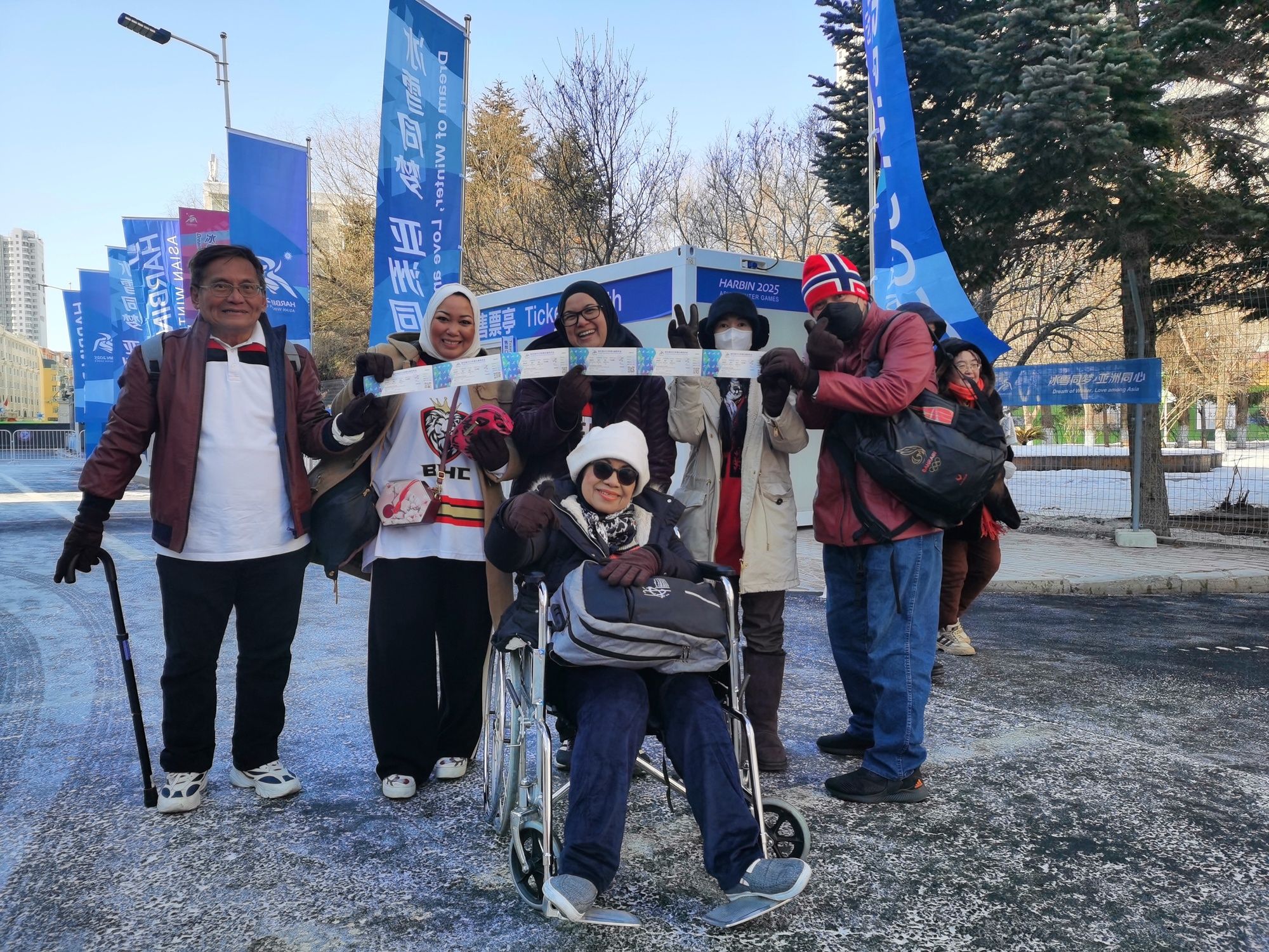 泰國(guó)觀眾阿伊莎的未婚夫是巴林男子冰球隊(duì)的7號(hào)隊(duì)員。亞冬會(huì)開幕前夕,阿伊莎帶著母親、姐妹等一家六口,從曼谷直飛到哈爾濱觀賽助威。她告訴記者,母親因?yàn)樾袆?dòng)不便需要坐輪椅觀賽,在哈爾濱,他們一家得到了賽場(chǎng)工作人員的悉心照顧。