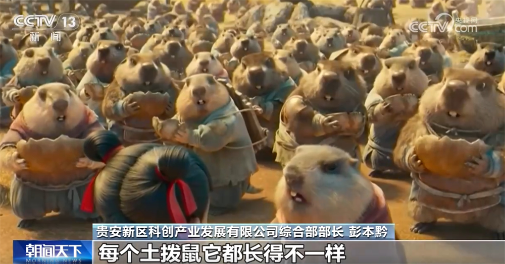 貴安新區(qū)科創(chuàng)產(chǎn)業(yè)發(fā)展有限公司綜合部部長彭本黔稱:“導(dǎo)演要求每一個天兵都要有自己的一個構(gòu)圖,每個土撥鼠都長得不一樣,對渲染的算力要求很高,要是渲不好就很模糊了。整個《哪吒之魔童鬧?!分谱骱臅r5年,在我們這里渲染基本上都用了小三年的時間。”