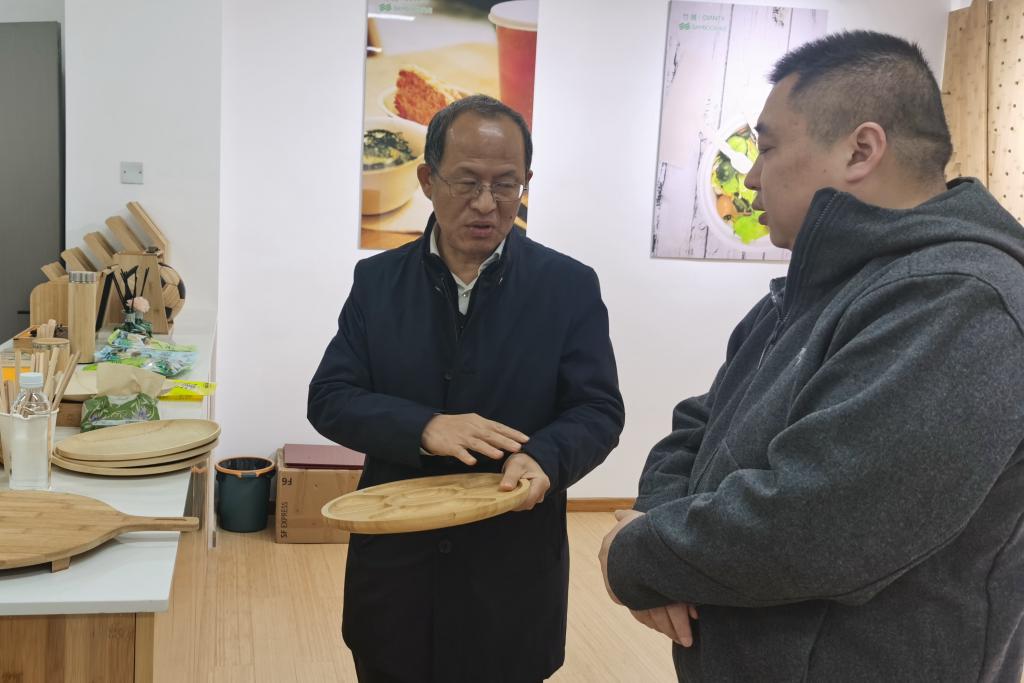 蘭定國(左)在進(jìn)行“以竹代塑”調(diào)研。(受訪者供圖)