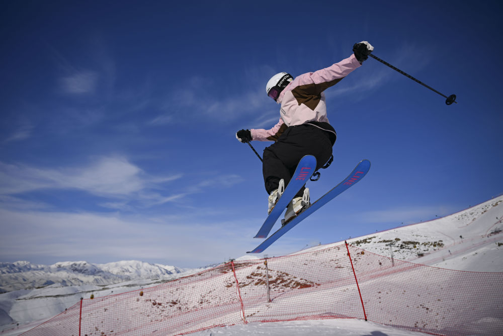 1月28日,即農(nóng)歷除夕當(dāng)天,雪友在滑雪公園飛越跳臺(tái)。新華社記者 胡虎虎 攝