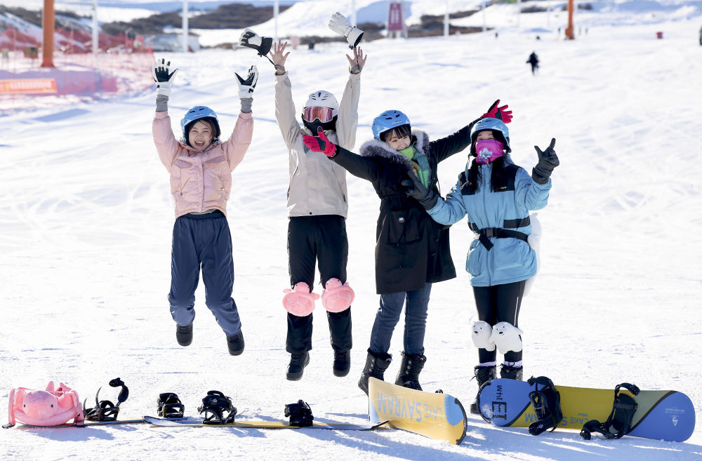 上海游客陳杏紅說(shuō):“這是我第一次來(lái)體驗(yàn)傳說(shuō)中的粉雪,真是來(lái)了就不想走?!?/p>