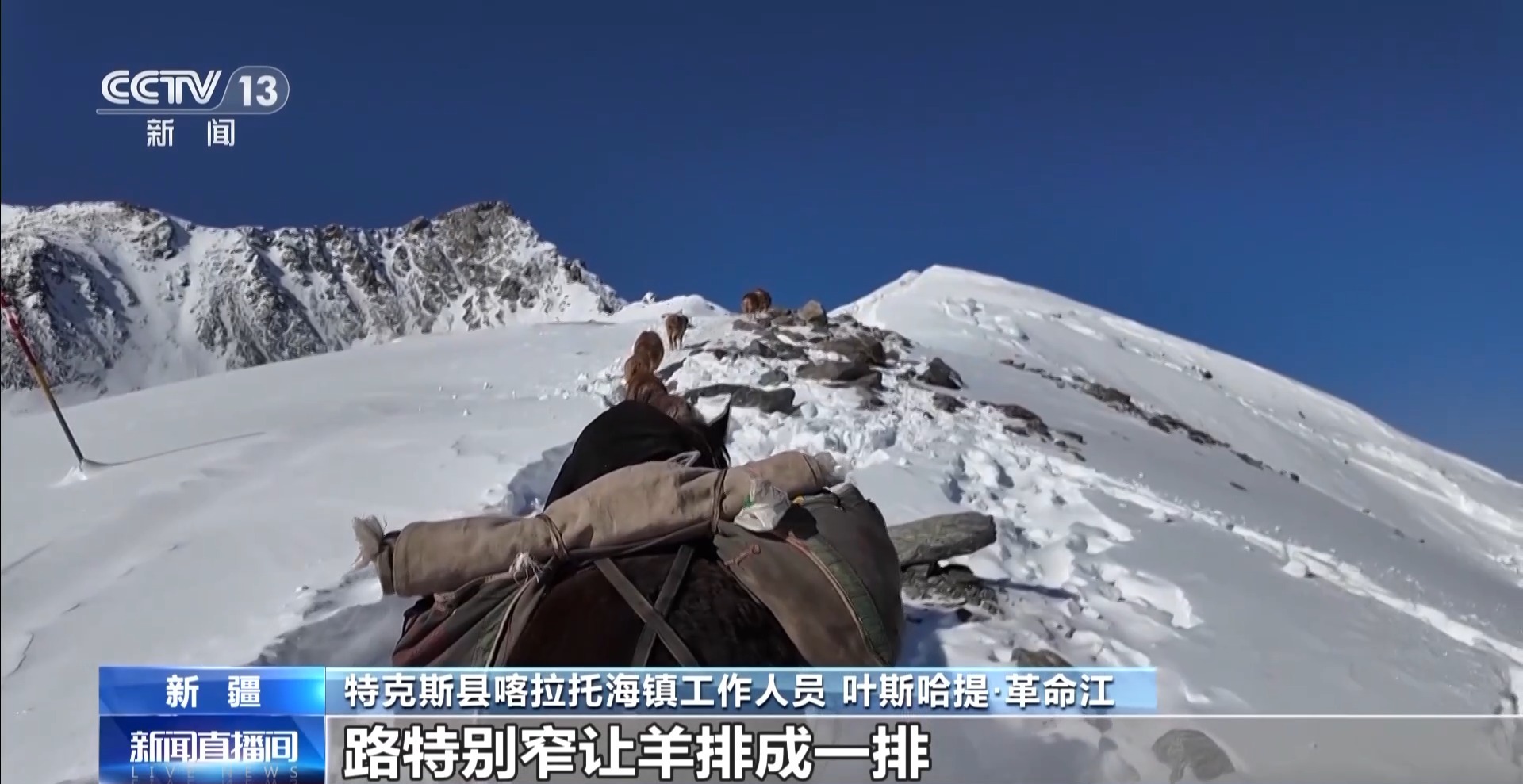 特克斯縣喀拉托海鎮(zhèn) 葉斯哈提·革命江:我們牧民到了達(dá)坂以后,這個(gè)路特別窄,讓羊排成一排,慢慢地上山。