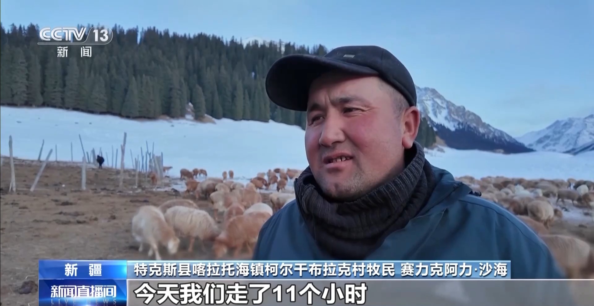 特克斯縣喀拉托海鎮(zhèn)柯?tīng)柛刹祭舜迥撩?賽力克阿力·沙海:今天我們走了11個(gè)小時(shí),我們明天早晨繼續(xù)出發(fā)。