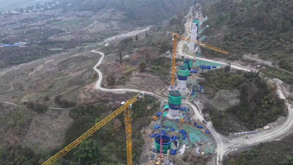 圖為羊架河特大橋施工現(xiàn)場。(中鐵二十三局供圖)