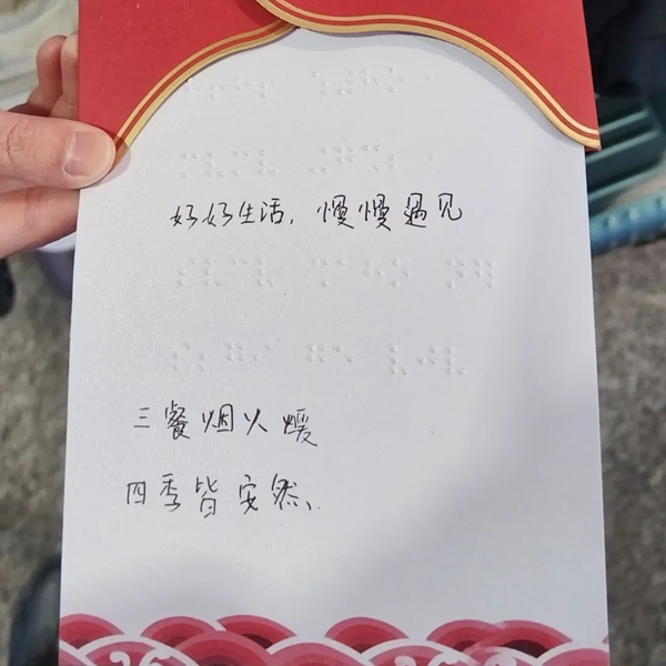 賀卡上有盲文,也有普通的文字