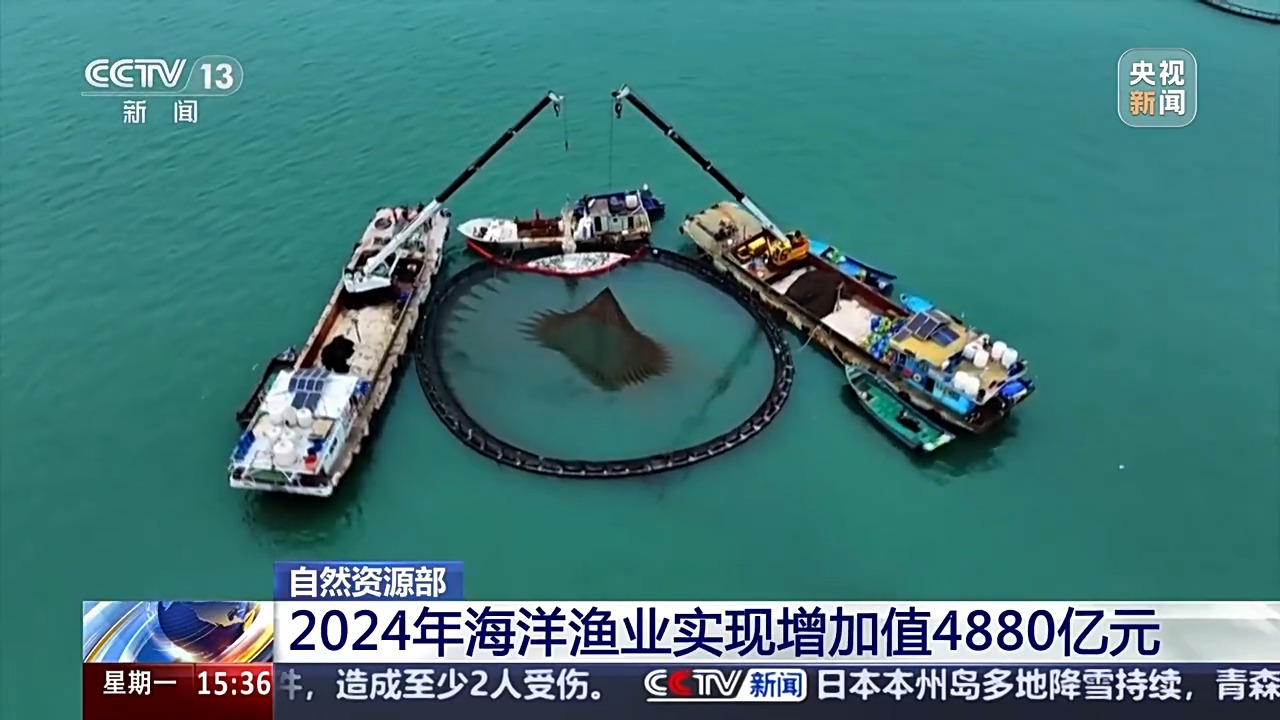 2024年,海洋水產(chǎn)品供給能力不斷提升。隨著海上養(yǎng)殖生產(chǎn)集群加快形成,智慧漁業(yè)蓬勃發(fā)展,“藍(lán)色糧倉”建設(shè)取得積極進(jìn)展,全年海洋漁業(yè)實(shí)現(xiàn)增加值4880億元,比上年增長4.0%,2024年海水資源利用規(guī)模不斷增加,全國海水淡化產(chǎn)量超4億噸,工業(yè)冷卻海水用量超1800億噸。