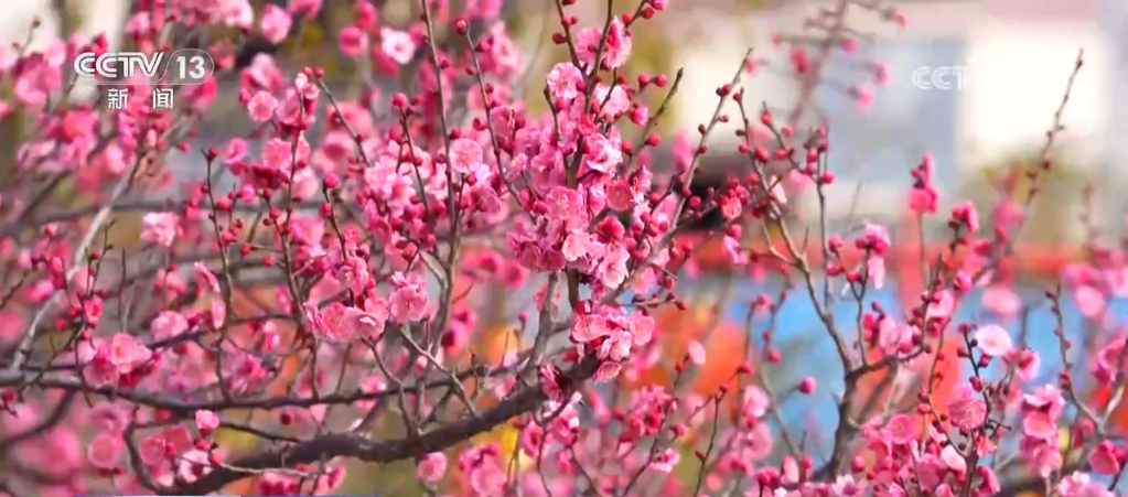 同樣,在甘肅隴南市武都區(qū),濕地公園內(nèi)的梅花也競(jìng)相綻放,粉紅相間的花朵掛滿枝頭,幽香彌漫在空氣中,引來(lái)蜜蜂翩翩起舞。