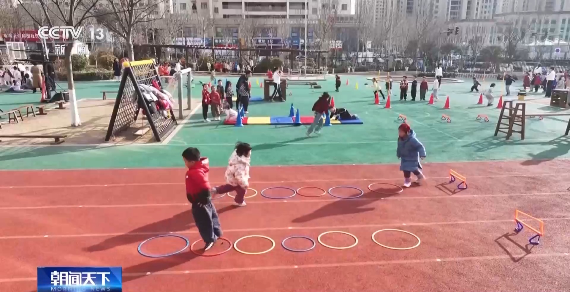 上午9時(shí)多,記者來到日照市的一家幼兒園時(shí),孩子們正在做早操。這邊都是3歲以上幼兒園小班到大班的孩子。而在另一片場(chǎng)地,一群2歲多的托班“小小孩”,正在老師的帶領(lǐng)下做游戲。