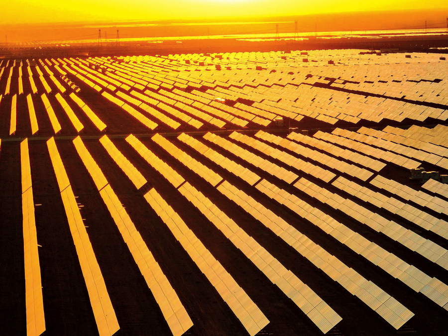 夕陽(yáng)映照下的新疆哈密市石城子光伏產(chǎn)業(yè)園一角(2024年9月8日攝)。胡虎虎攝/本刊