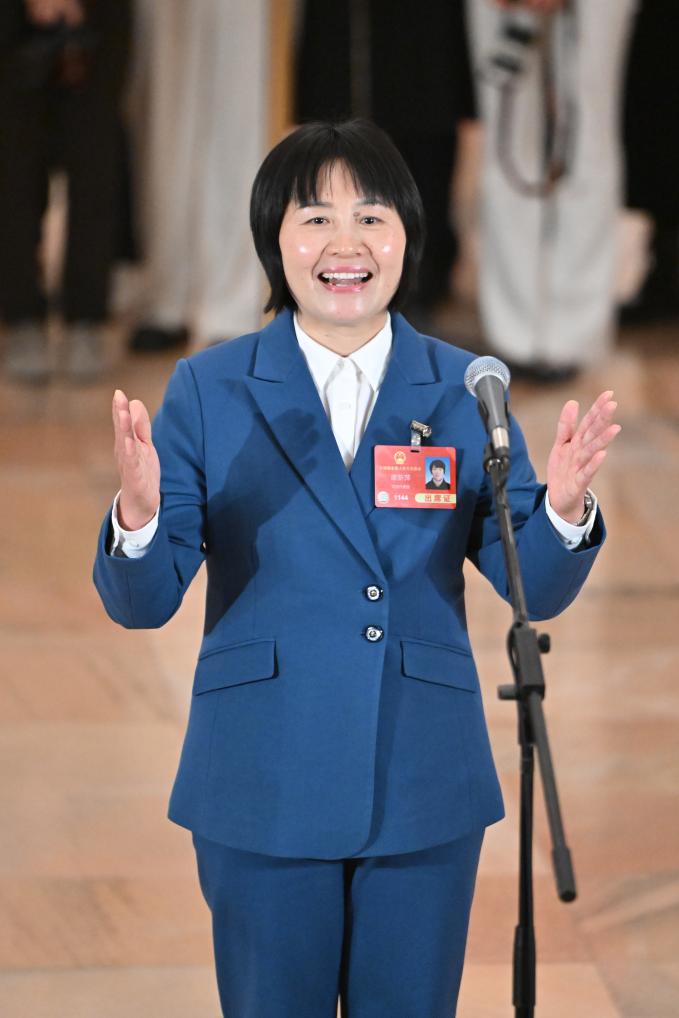 3月11日,第十四屆全國(guó)人民代表大會(huì)第三次會(huì)議第三場(chǎng)“代表通道”集中采訪活動(dòng)在北京人民大會(huì)堂舉行。這是全國(guó)人大代表譚新萍接受媒體采訪。新華社記者 胥冰潔 攝