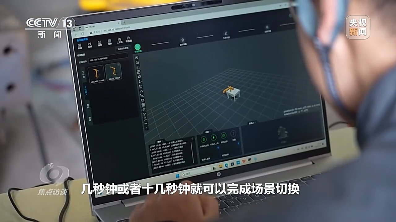 智能機(jī)器人工程師 王晨光:如果要換活兒或者換產(chǎn)線,那就需要人工去重新編程,最簡單的編程工作也需要花費半天或者一天的時間,還有調(diào)試,而繹焊機(jī)器人加持了人工智能,幾秒鐘或者十幾秒鐘就可以完成場景切換,能夠適應(yīng)個性化的復(fù)雜生產(chǎn)場景。